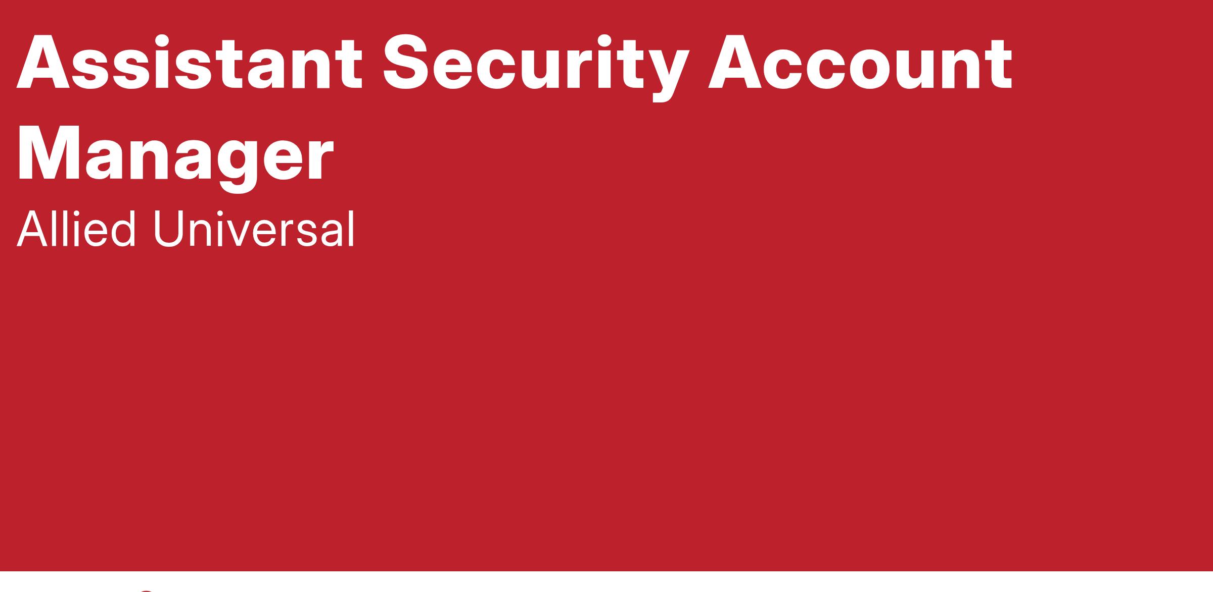 Allied Universal is looking to hire an Assistant Account Manager. The Assistant Account Manager job is responsible for assisting the Account Manager with all supervisory, training and operations functions at the assigned post in accordance with post orders and client instructions, and following all internal procedures. To support and ensure success in this role, we provide a comprehensive, week-long management onboarding course designed to provide best practices, tools and guidance.