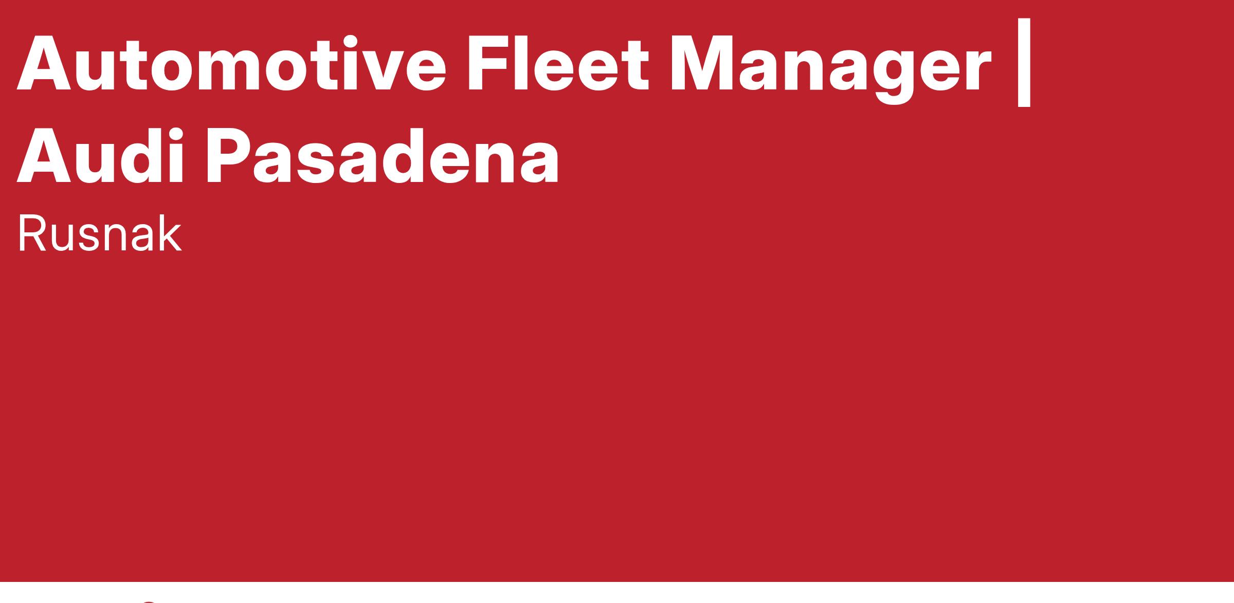 Our Audi dealership in Pasadena is seeking a Fleet Manager. This is a great opportunity to take your automotive career to the next level. In this position, you will contribute to the success of Rusnak Group by successfully achieving sales goals and objectives relevant to the components of the Company’s strategic plan.