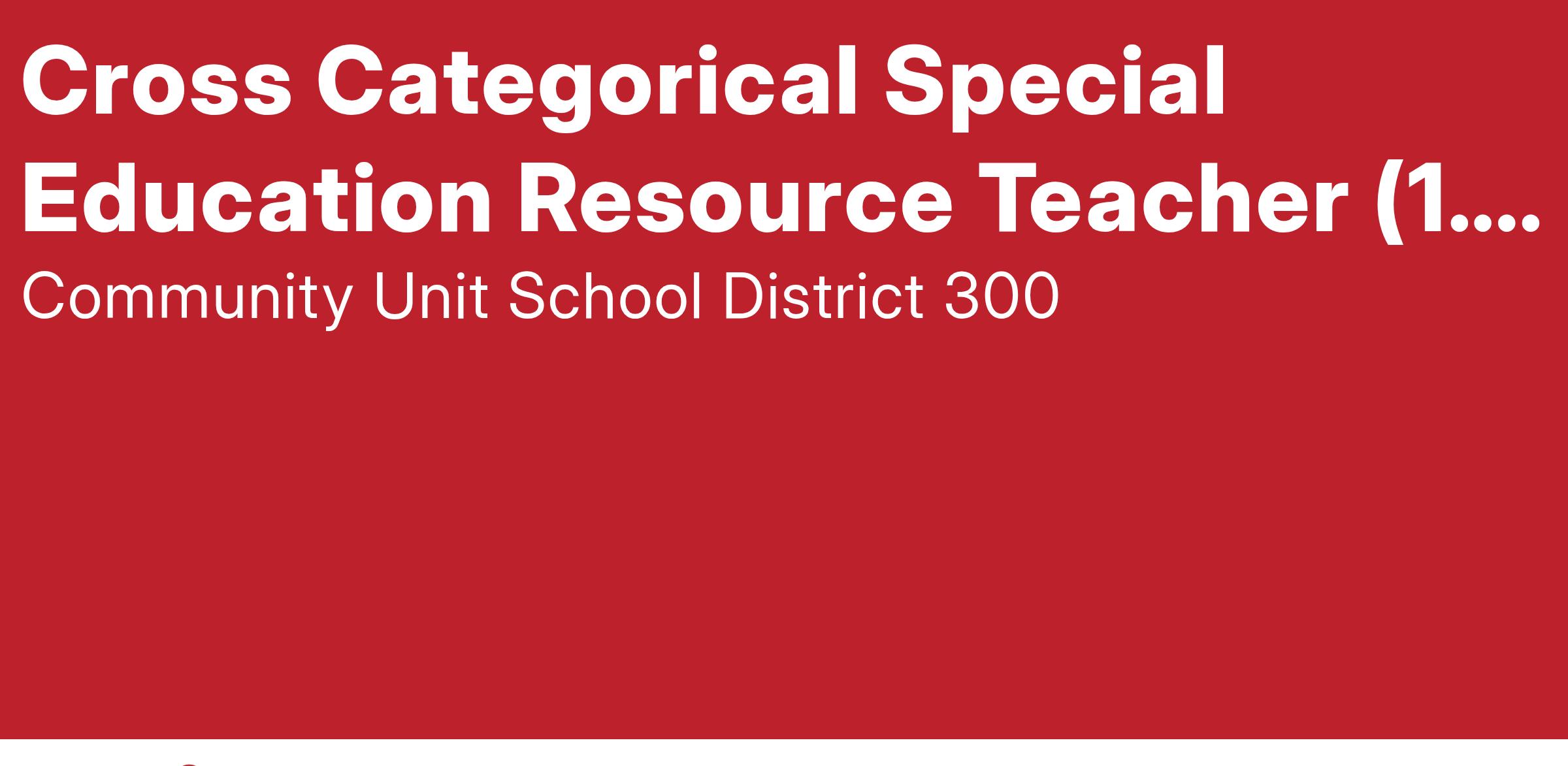 Full-time Elementary School Cross Categorical Special Education Resource Teacher to educate students with a wide variety of disabilities in all academic areas as well as fulfilling case management duties.