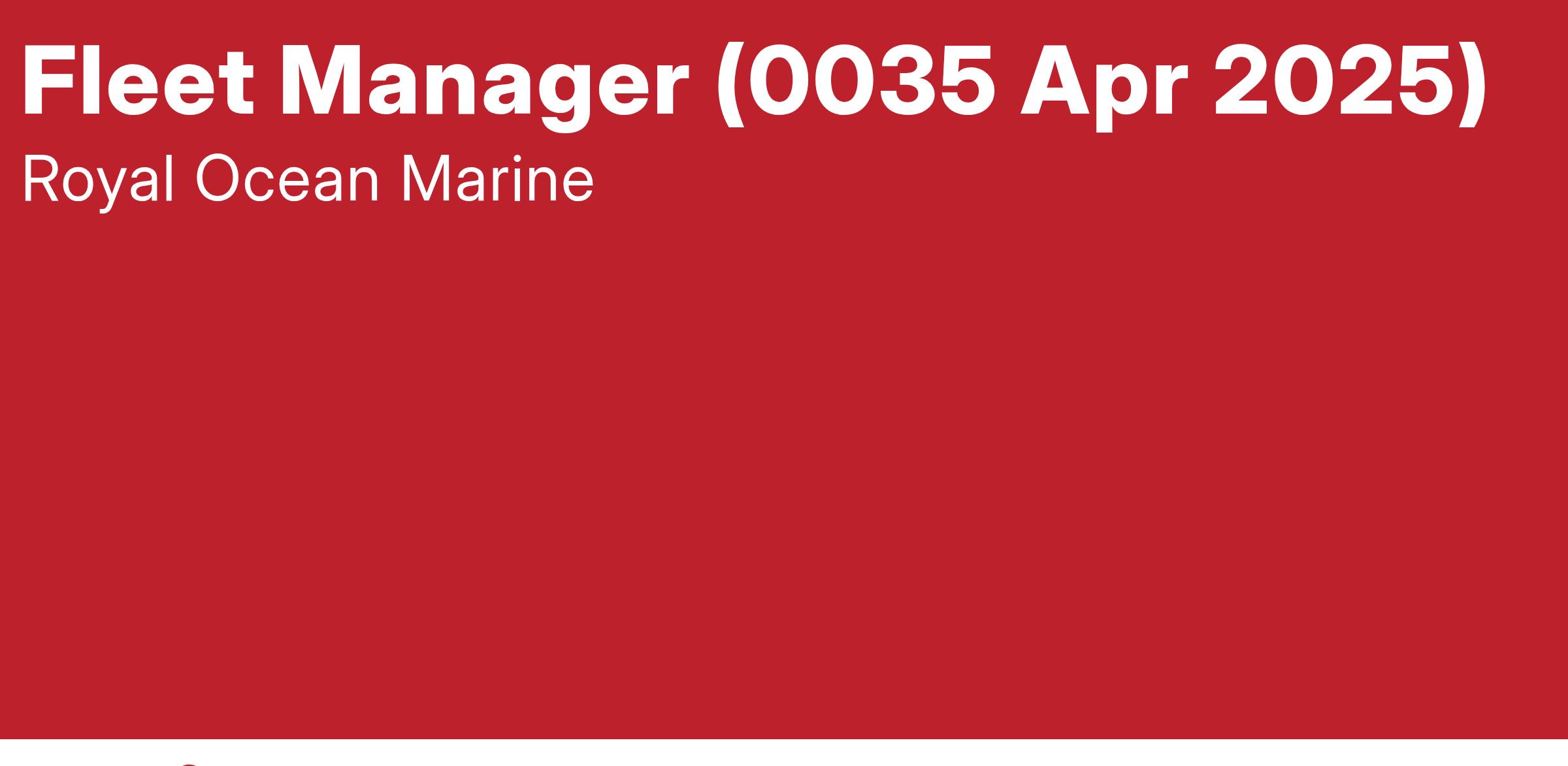 DescriptionRoyal Ocean Marine is seeking a knowledgeable and skilled Fleet Manager to oversee the operational efficiency and performance of our client shipping marine fleet. The Fleet Manager will play a critical role in ensuring that all vessels operate safely, efficiently, and in compliance with regulatory standards.