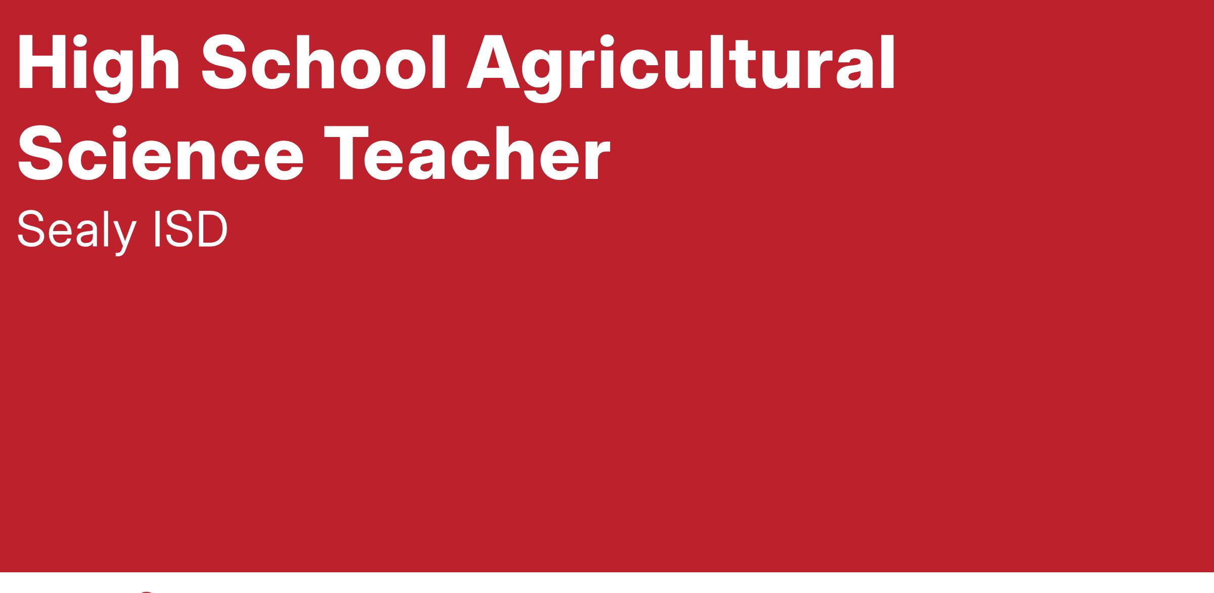 Direct and manage the agricultural science program for assigned campus. Provide students with appropriate learning activities and experiences designed to help them fulfill their potential for intellectual, emotional, physical, and social growth. Enable students to develop competencies and skills to function successfully in society. Candidates should possess strong work ethic, be self motivated, goal driven and passionate in delivery of course content and FFA activities. Knowledge of Ag Content a must. Assignment could include (but not limited to) one or more sections of Ag Mech/Welding. Willingness to serve as one of three FFA / Jr FFA Advisors while demonstrating: solid communication, organizational, and interpersonal skills. Possess ability to impact students and build relationships through FFA and Jr FFA activities. Train multiple successful LDE, CDE & SDE teams. Knowledge of record books, degrees, applications. Engage, advise and supervise SAE projects of all types traditional and beyond at county and major stock shows. Candidates should possess knowledge, commitment and interest, in developing student leaders through camps, conventions, chapter, and community activities. Assist with development of strong POA. Expectations will require early mornings, late nights, and weekends.