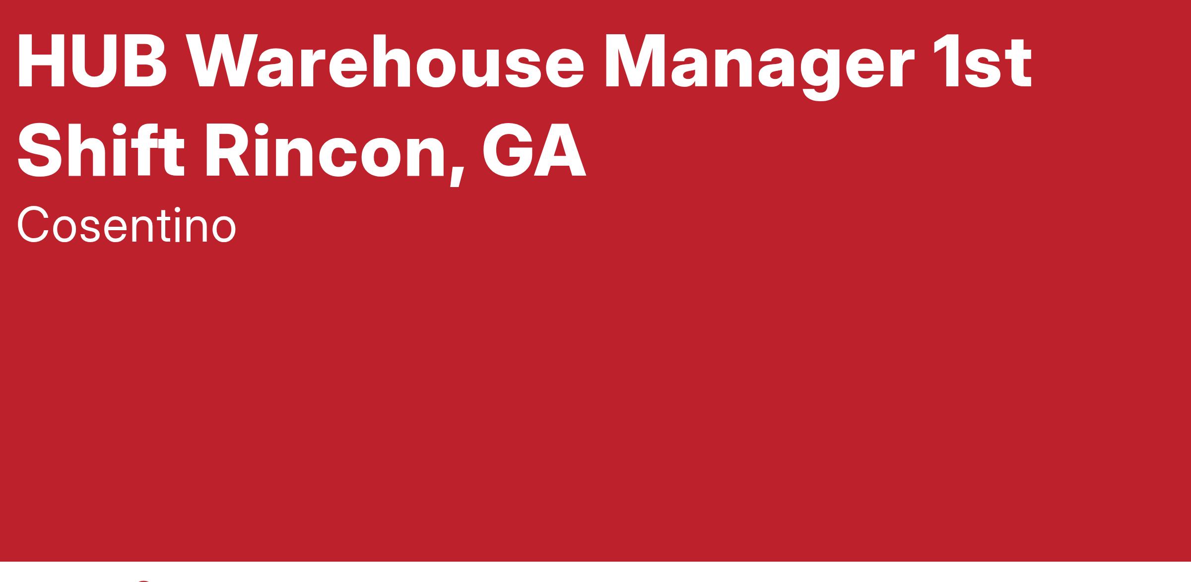 We are looking for a HUB Warehouse Manager to join our Rincon, GA location. You will join a company: