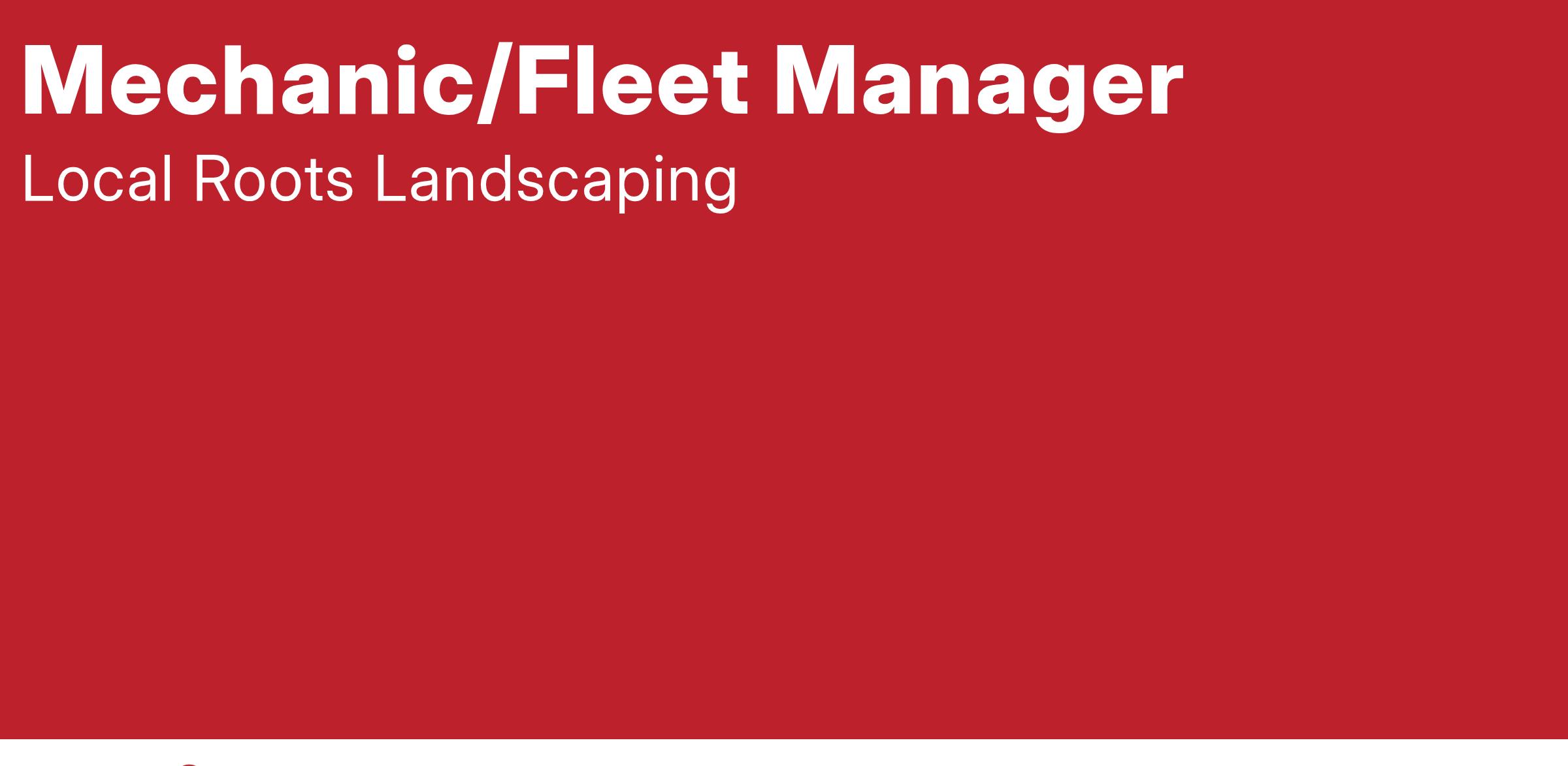 The Mechanic/Fleet Manager plays a critical role at Local Roots Landscaping by ensuring our fleet of vehicles, equipment, and tools is always in peak condition. This position is vital to maintaining the high standards of craftsmanship and efficiency that our company is known for. Combining mechanical expertise with strong organizational and leadership skills, this role supports our team in delivering exceptional landscaping services to our clients.