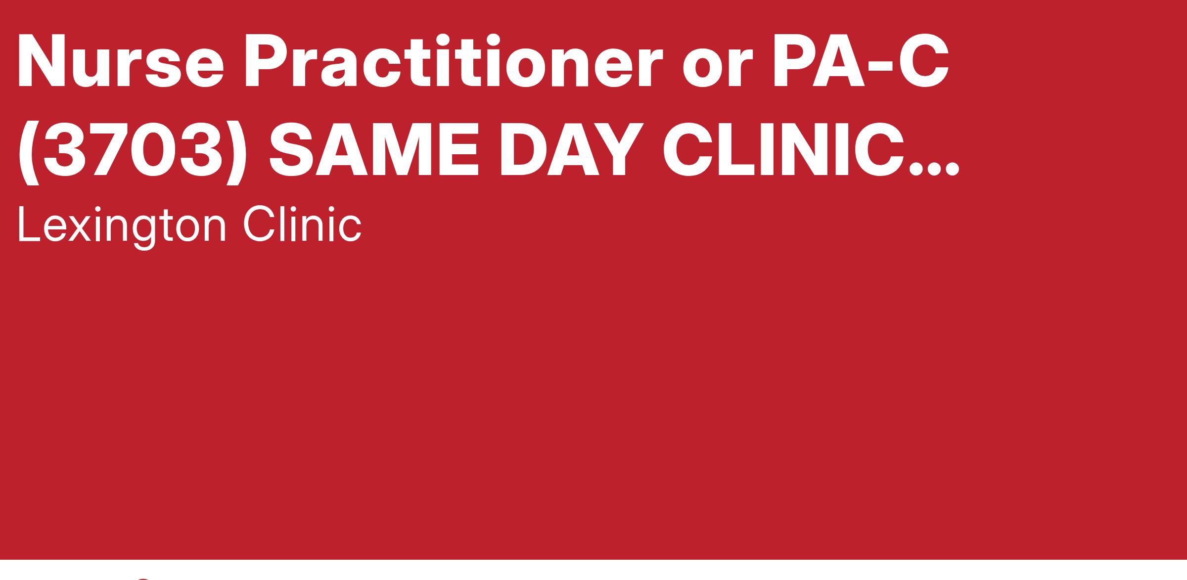 Lexington Clinic is an Equal Opportunity employer. All qualified applicants will receive consideration for employment without regard to race, color, religion, sex, age, national origin, genetic information, disability or protected veteran status.