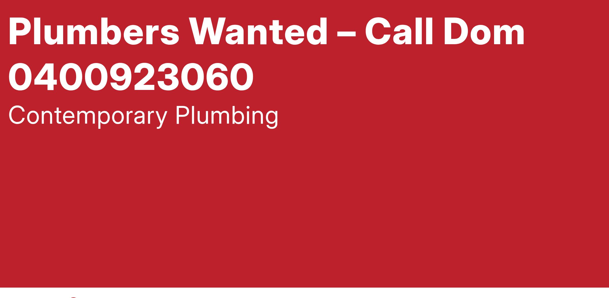 If you think you’ve got what it takes then apply now via email with a copy of your CV and a brief covering letter telling us why you are the right person for the job. Please email it through to dom@contemporaryplumbing.com.au