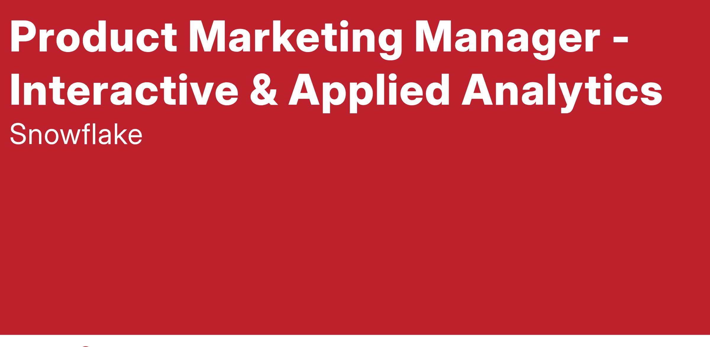 Do you want to be part of the team that is shaking up the data and AI world? Snowflake product marketers conceive and execute the go-to-market for the most strategic areas of the business. We’re looking for a highly talented, driven, and self-motivated marketing professional who can lead product marketing for Interactive and Applied Analytics. This PMM will work across our Snowflake sales, product, and marketing teams to develop go-to-market plans and solutions that position Snowflake as the engine of choice for embedded analytics in applications and applied analytics for different industry verticals.