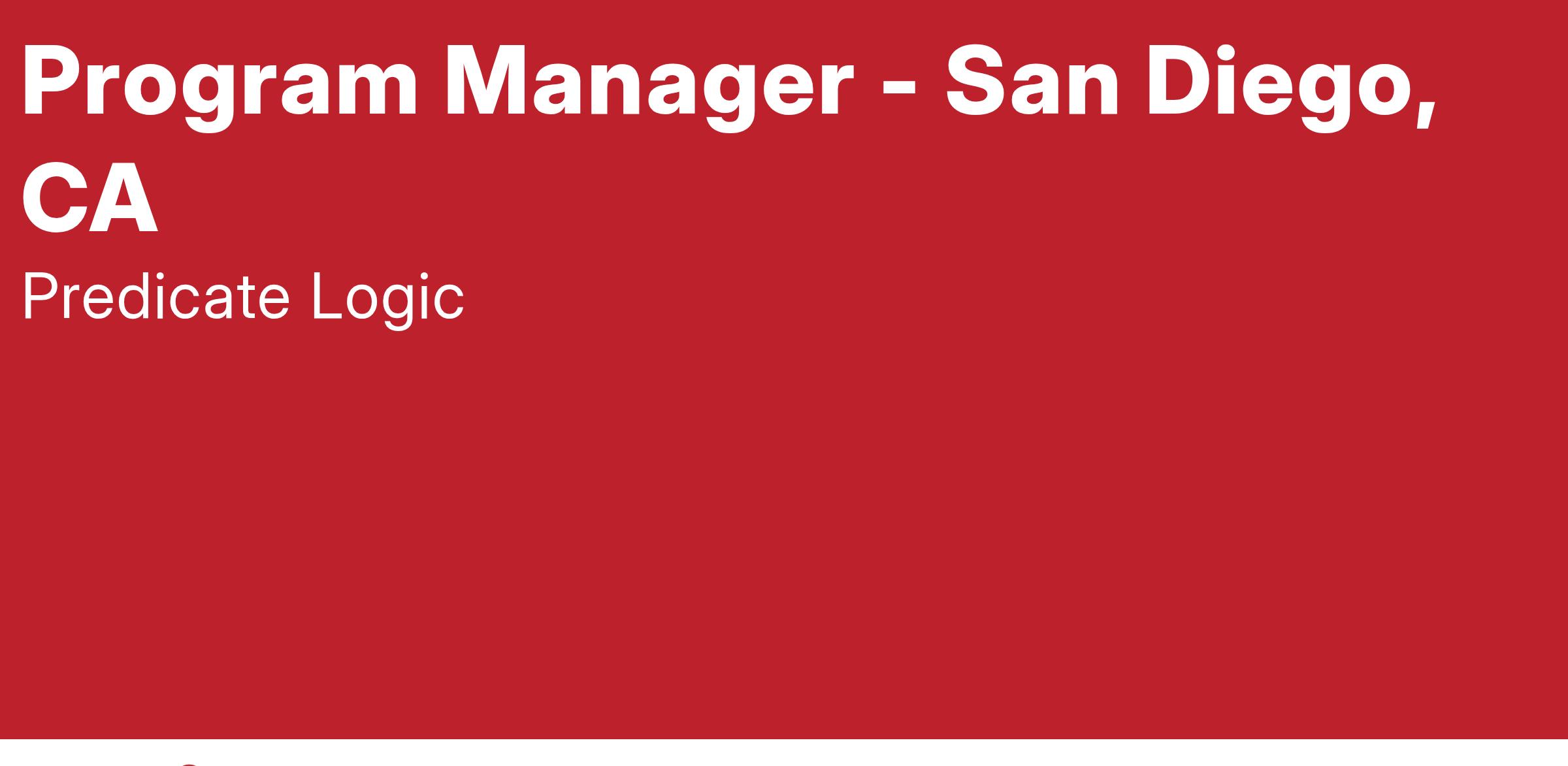Predicate Logic is looking for a motivated Program Manager to join our team in San Diego, CA.