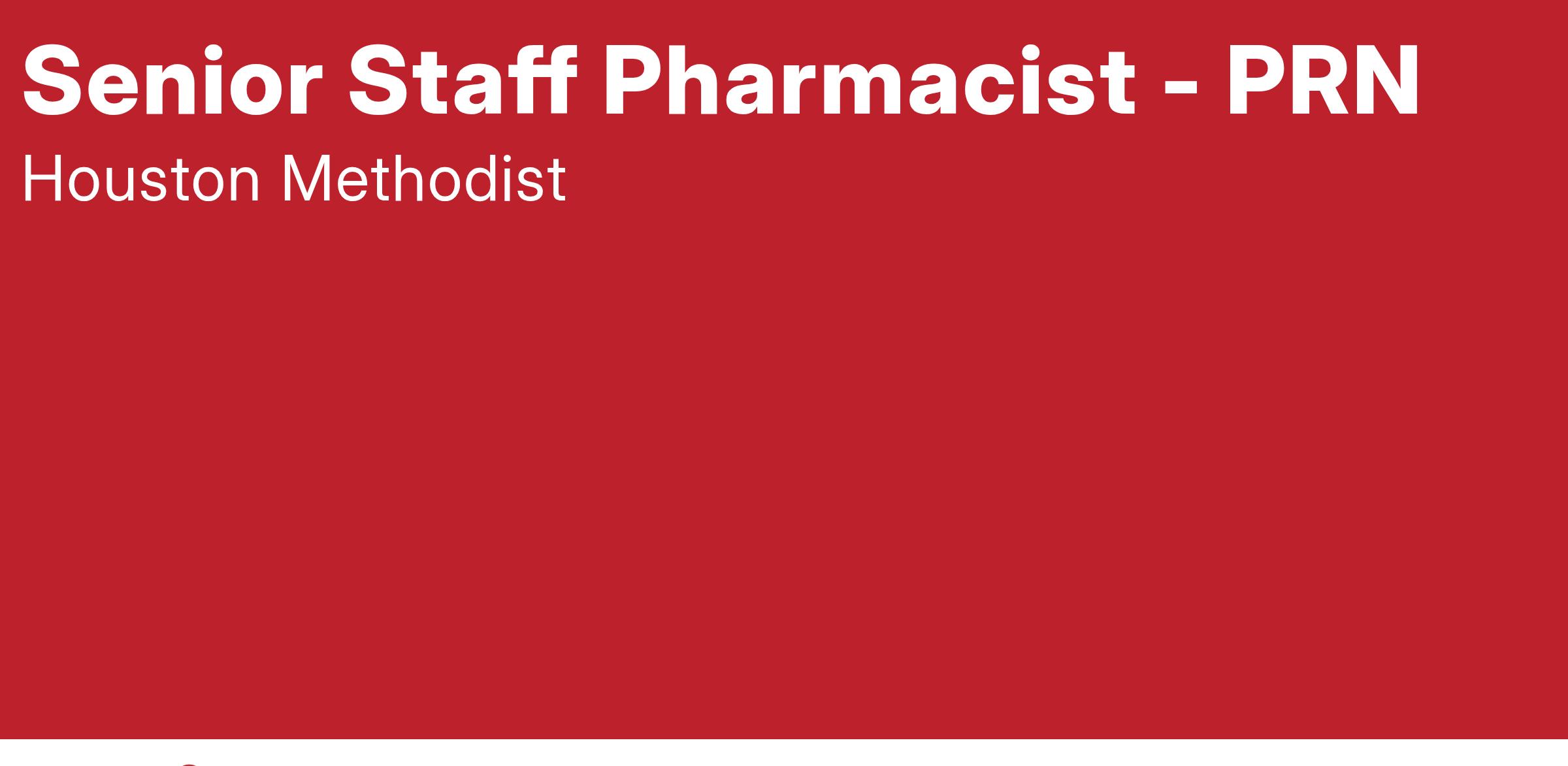 At Houston Methodist, the Senior Staff Pharmacist position is responsible for an expanded clinical role that may include responsibility for proactive review of patient profiles, participation in basic clinical functions such as discharge counseling, medication histories, completion of pharmacy consults, and participation in special projects. This position provides day-to-day comprehensive, patient-oriented pharmacy services in any or all areas of the department to include processing orders, therapy review, and education to patients and other members of the direct patient care team. Other duties for the Senior Staff Pharmacist position include serving as a role model and preceptor for staff pharmacists, pharmacy students, and residents in the integration of clinical and distributive services in the Department. This position also contributes to fulfilling the department's mission by collaborating to provide innovative, personalized, cost-effective pharmaceutical care in a culture dedicated to quality and safety.