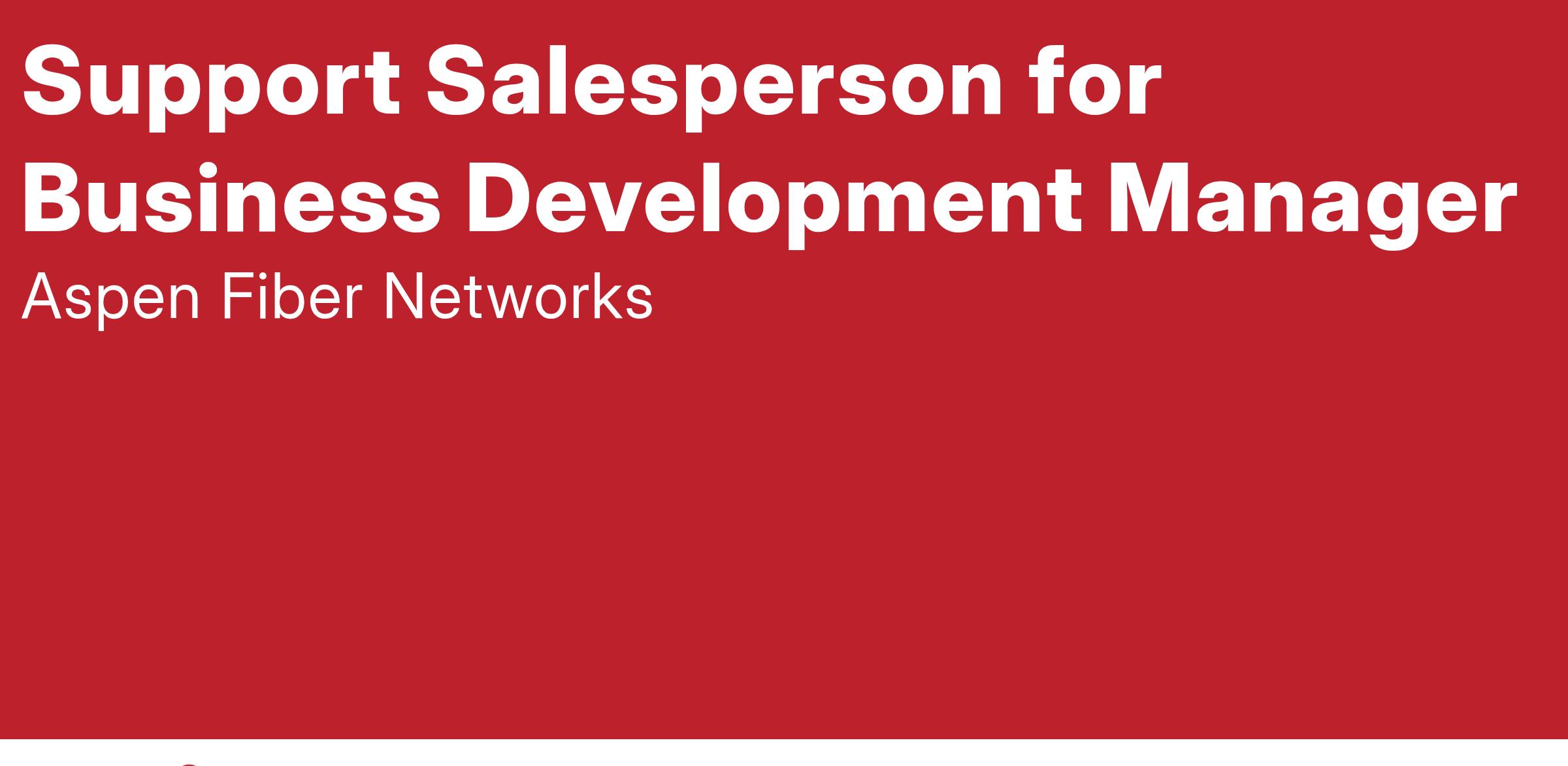 DescriptionAspen Fiber Networks, a leader in information technology solutions, is seeking a dedicated and dynamic Support Salesperson to assist our Business Development Manager. In this role, you will be a vital part of our sales team, helping to drive growth and enhance client relationships through effective support and strategic initiatives.