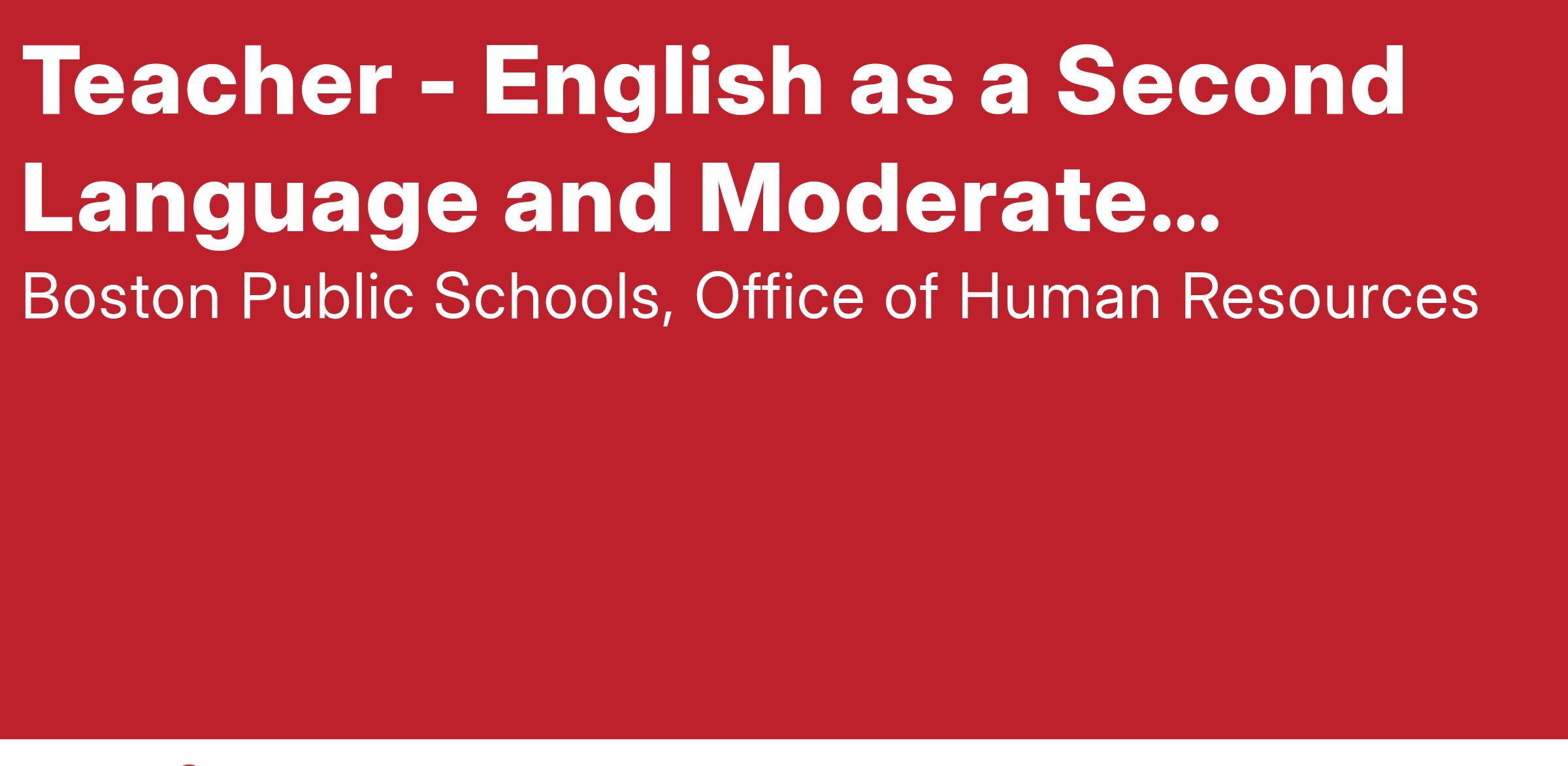 Boston Public Schools seeks an exceptional English as a second Language (ESL) and Special education/moderate disabilities teacher who is highly qualified and knowledgeable to join our community of teachers, learners and leaders. This is an exciting opportunity for teachers who desire to serve where their efforts matter. In BPS, the teachers and leaders are committed to the vision of high expectations for achievement, equal access to high levels of instruction, the achievement of academic proficiency for all students, and the closing of the achievement gap among subgroups within the schools. BPS is a great place for those who seek to work in an environment that supports their creativity and innovation, and respects their skills and abilities as a teacher.